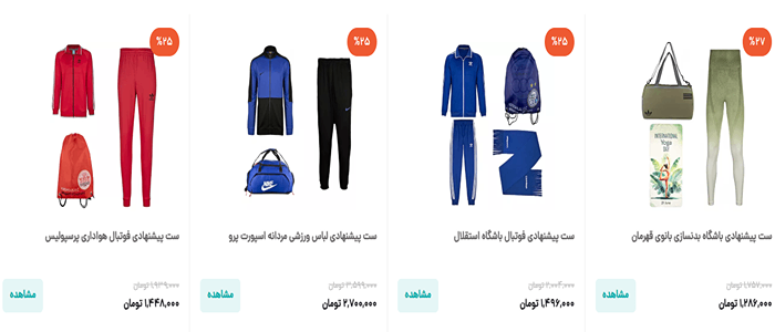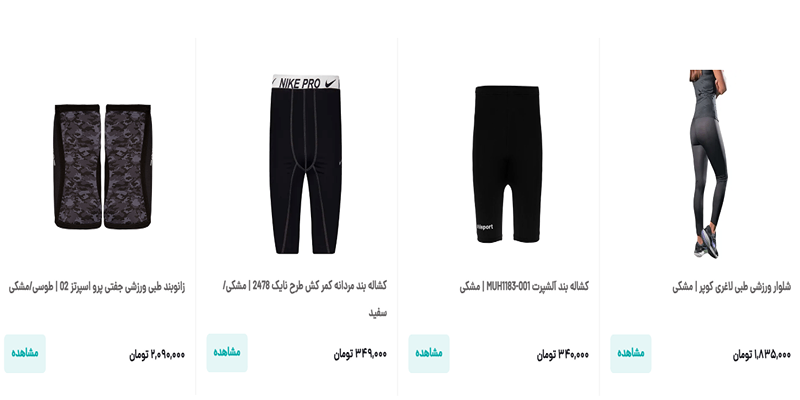 قیمت محصولات فروشگاه اسپرت جهانی: